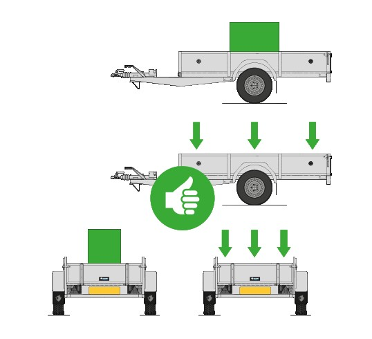 - Plaats zware voorwerpen zoveel mogelijk op de assen van de aanhangwagen